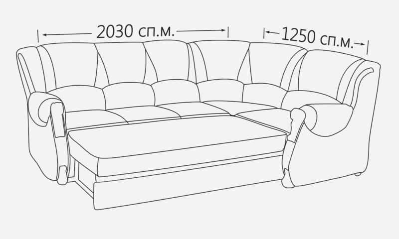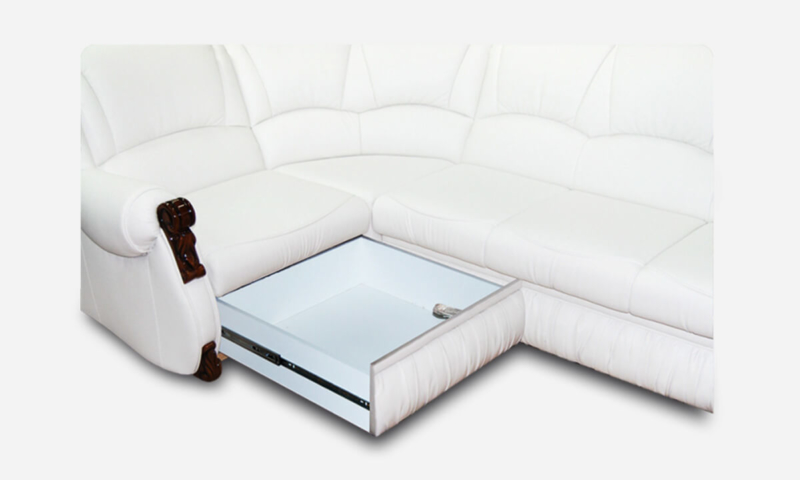 Кутовий диван, кут (лев. Прав.), Ісп. тканин - задня стінка і спальне місце в оббивної тканини.