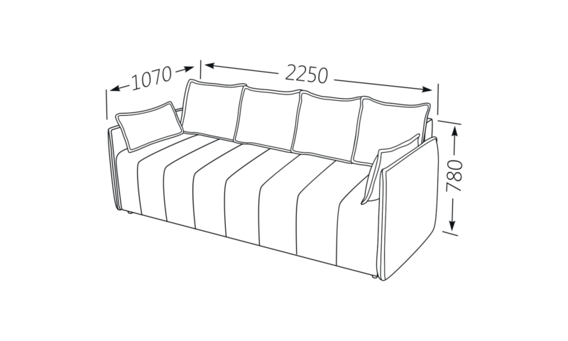 Габаритний розмір в зібраному вигляді (Довжина х Глибина х Висота), мм: 2250х1070х780