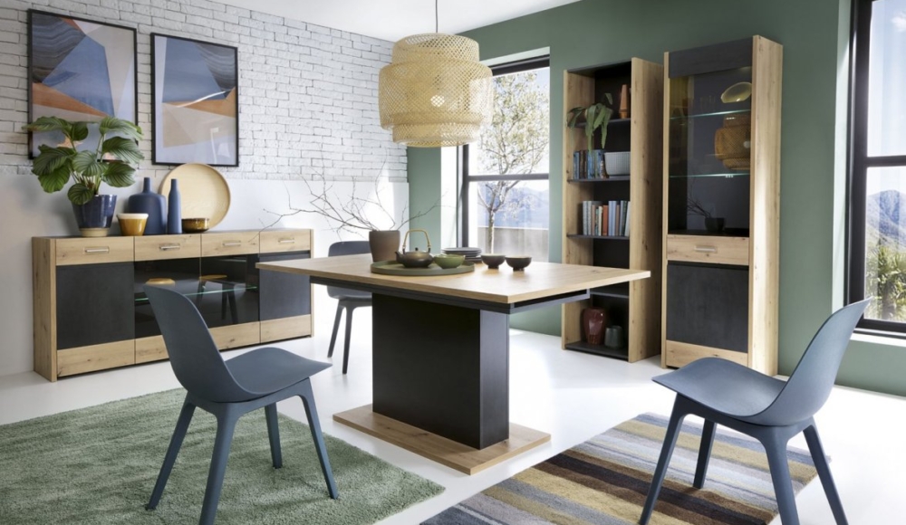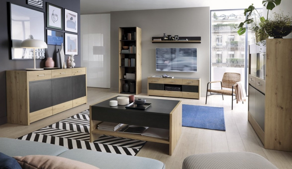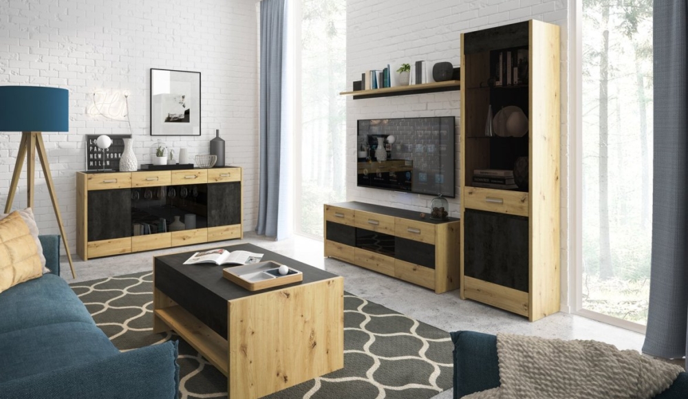 Aviles - це колекція, що поєднує в собі елегантність з трохи промисловим характером, яка стає все більш популярною бурі. Контрастуючи один з одним декор дуба Artisan і Fresko, що нагадує темний бетон, чудово поєднується з сучасним інтер’єром, надаючи йому затишний вигляд. Комфорт у використанні забезпечать меблеві аксесуари, що використовуються, такі як петлі та напрямні з безшумним закриттям та металеві ручки.