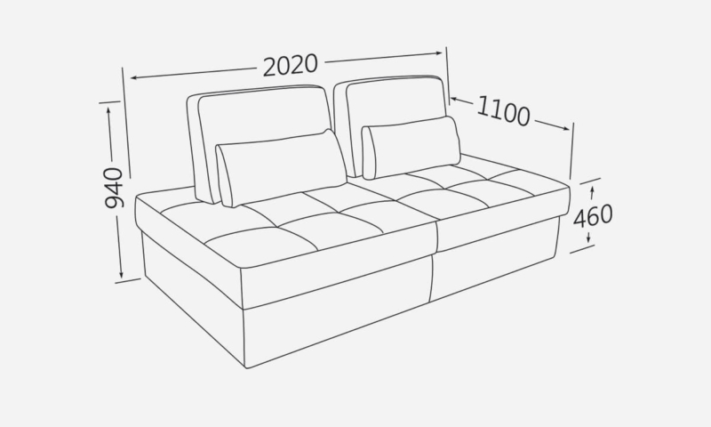 Габаритний розмір в зібраному вигляді (Довжина х Глибина х Висота), мм: 2020х1100х940