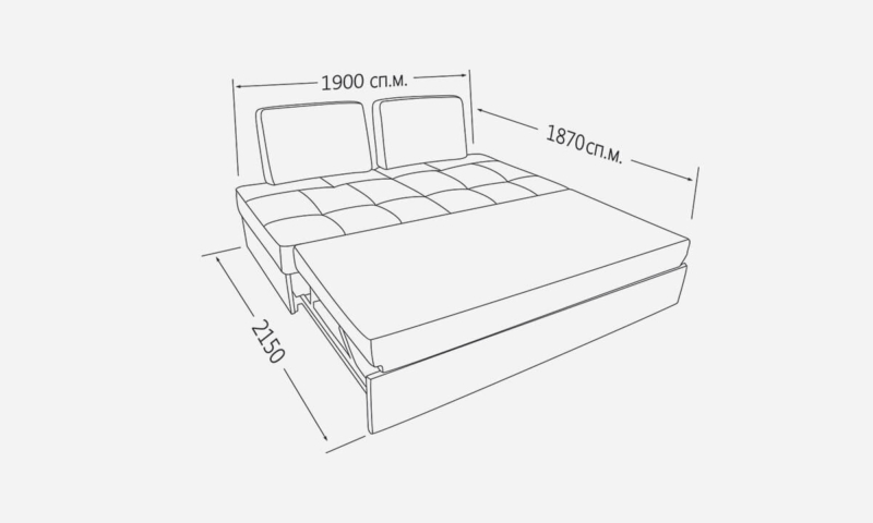 Розмір спального місця (Довжина х Ширина), мм: 1900х1870