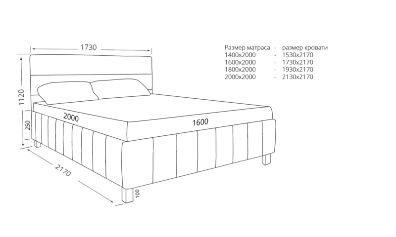 Габаритний розмір ліжка 2000 (ДхШхВ), мм: 2130х2170х1120